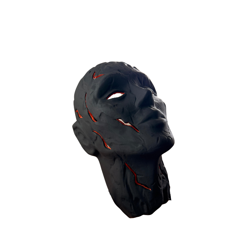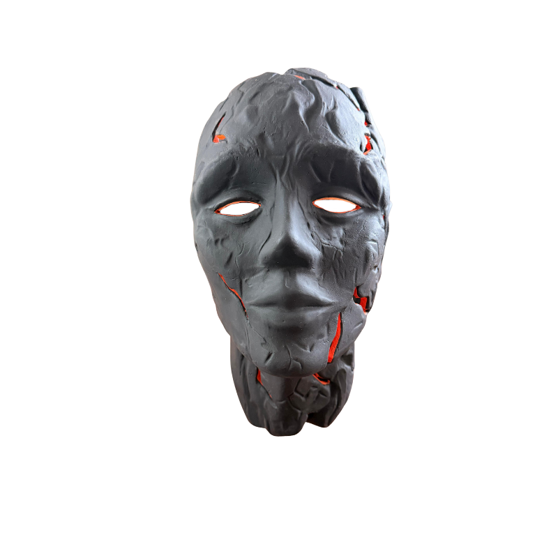 A striking sculptural mask inspired by a face discovered at Joya de Cerén in El Salvador, a site recognized as human patrimony after being preserved by a volcanic eruption. Lava Face emerges with a dramatic matte black surface fractured by glowing volcanic tones, evoking depth, movement, and raw emotion. Designed as a wall-mounted statement, it brings intensity and artistic presence to curated interiors that embrace bold character and contemporary expression.